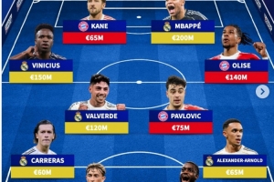 德转皇马+拜仁阵容:姆巴佩、凯恩、维尼修斯在列,总价10.3亿欧