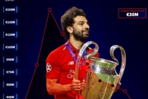 德转列萨拉赫红军生涯身价变化:最高1.5亿欧,如今只有3000万欧
