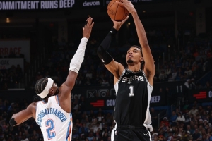 而文班亚马所率领的马刺队就是这个赛季最大的故事和现象。马刺从上赛季西部第13一下打到现在,要超越60胜,而且三杀卫冕冠军雷霆。马刺是这个赛季最大的故事,超越大家期待的。文班的个人表现毫无疑问也是超越大家期待的,马刺又得到文班这样一个天赋运动员,能打到今天,这叫马刺文化的热血重燃,马刺文化的王朝重生,这是最大的现象。
